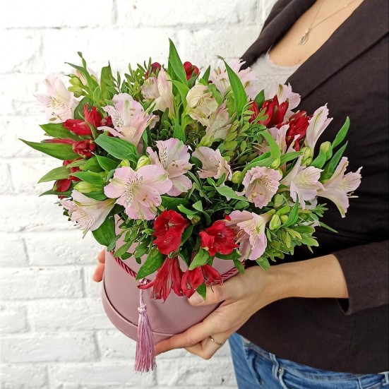 Альстромерия в шляпной коробке