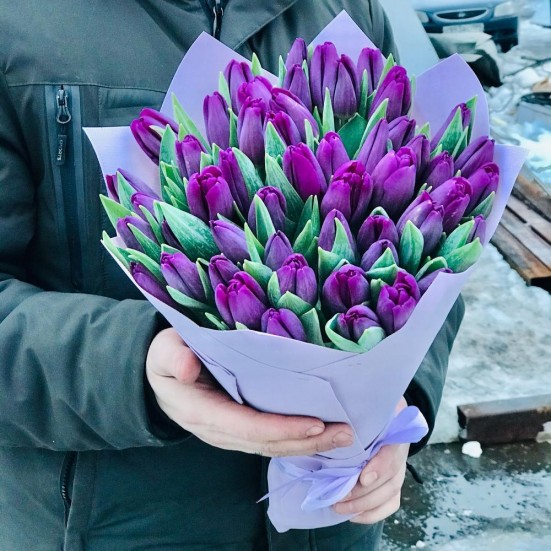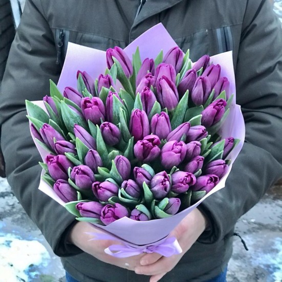 Букет из 51 фиолетового тюльпана в Байкальске