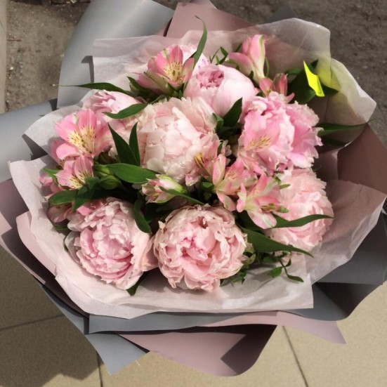 Букет «Альстромерии и пионы»