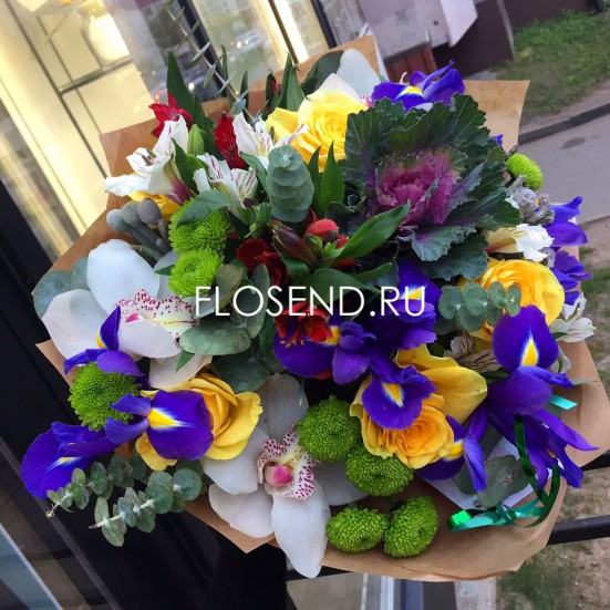 Букет с ирисами, хризантемами и розами в Байкальске