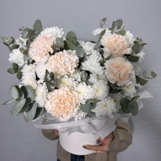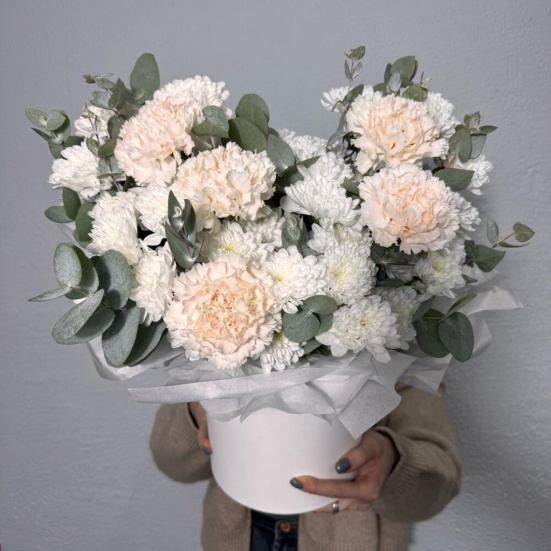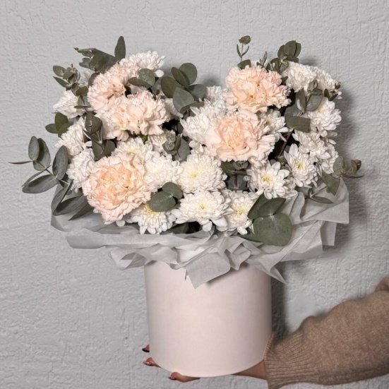Коробка из кустовых хризантем и диантуса в Байкальске